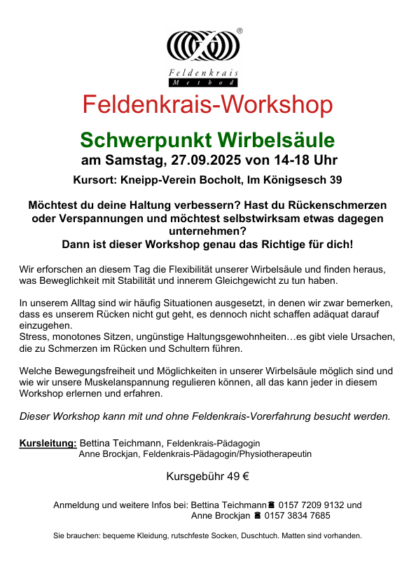 18.09.2025 | 18:30 – 19:30 Uhr | Ludgerushof Spork | Feldenkrais Gruppe |